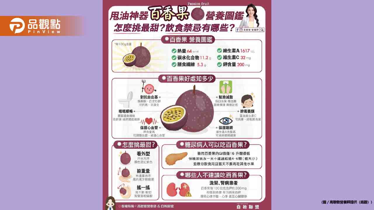 因為百香果鉀含量高 過量攝取恐導致高血鉀