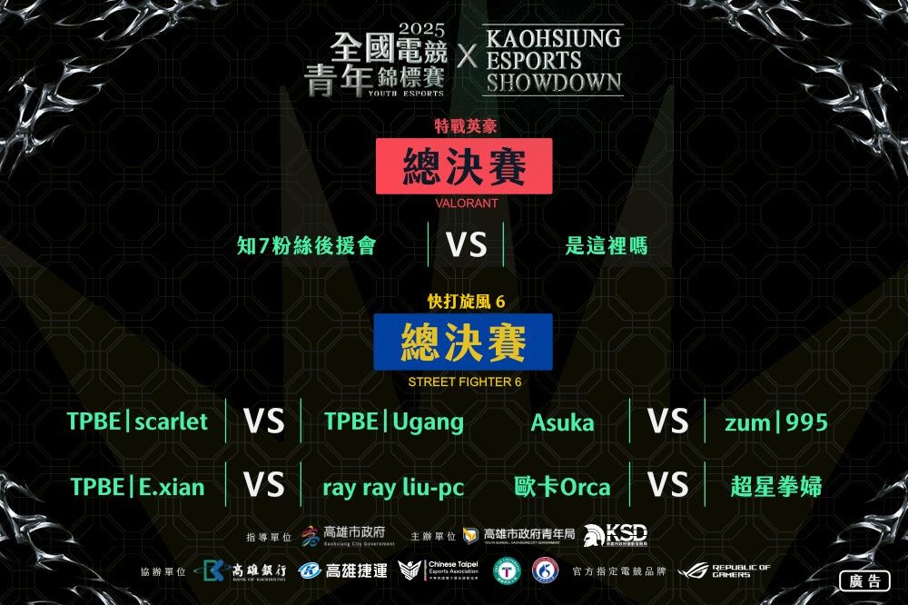 眾所矚目的第五屆「全國電競青年錦標賽 × KAOHSIUNG ESPORTS SHOWDOWN」即將於本周末迎來最終戰!本屆賽事由高雄市政府指導、高雄市政府青年局與運動發展局共同主辦,高雄捷運、高雄銀行協辦,官方指定電競品牌「ROG玩家共和國」贊助,線下總決賽將在11月15日(六)、16日(日)兩天於高雄捷運美麗島站熱血登場。線上賽事脫穎而出的《快打旋風6》、《特戰英豪》決賽選手屆時將齊聚光之穹頂,爭奪60萬元總獎金與年度電競榮耀!
