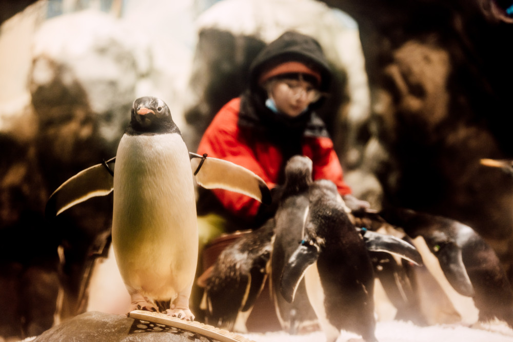 屏東海生館於聖誕節活動期間,在世界水域館極地區特別佈置充滿節慶氛圍聖誕場景,設置雪白聖誕樹與雪屋打卡牆,讓民眾在極地寒冷溫度中,欣賞企鵝與鳳頭海鸚鵡療癒模樣,彷彿置身雪國,感受冰雪世界裡暖心祝福;今年隨著企鵝寶寶誕生,為場館增添更多溫馨與喜悅;海生館希望藉由這份「溫暖的白色」,讓大家不只能感受到新生命帶來幸福,也能看見館內在照護上用心;從細心守護企鵝寶寶成長,到陪伴高齡生物長期照護,飼育團隊都以高度專業與愛心細緻守護每一位生命。