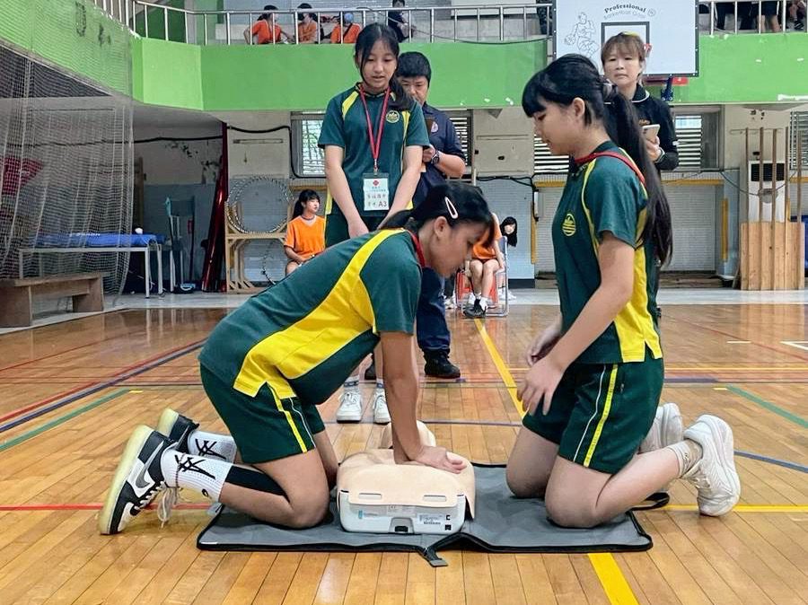 面對巨災常態化,急救已不只是專業人員的責任,更是全民所需具備的素養。今(114)年的競賽突破性地增加了CPR及AED的實戰考驗,以包紮競賽為主、心肺復甦術為輔,實際讓同學動手操作,在所有流程皆完成標準後,運用計分安妮判斷成績高低。歷年來包紮競賽的參賽隊伍已比到爭分奪秒的白熱化階段,不僅考量到包紮過程中重視患者的舒適性,在救護技巧上也更重視細節。參賽同學說:「我們平常在學校利用瑣碎的時間練習,老師有提醒我們容易扣分的地方,所以就要花更多時間去熟練」。