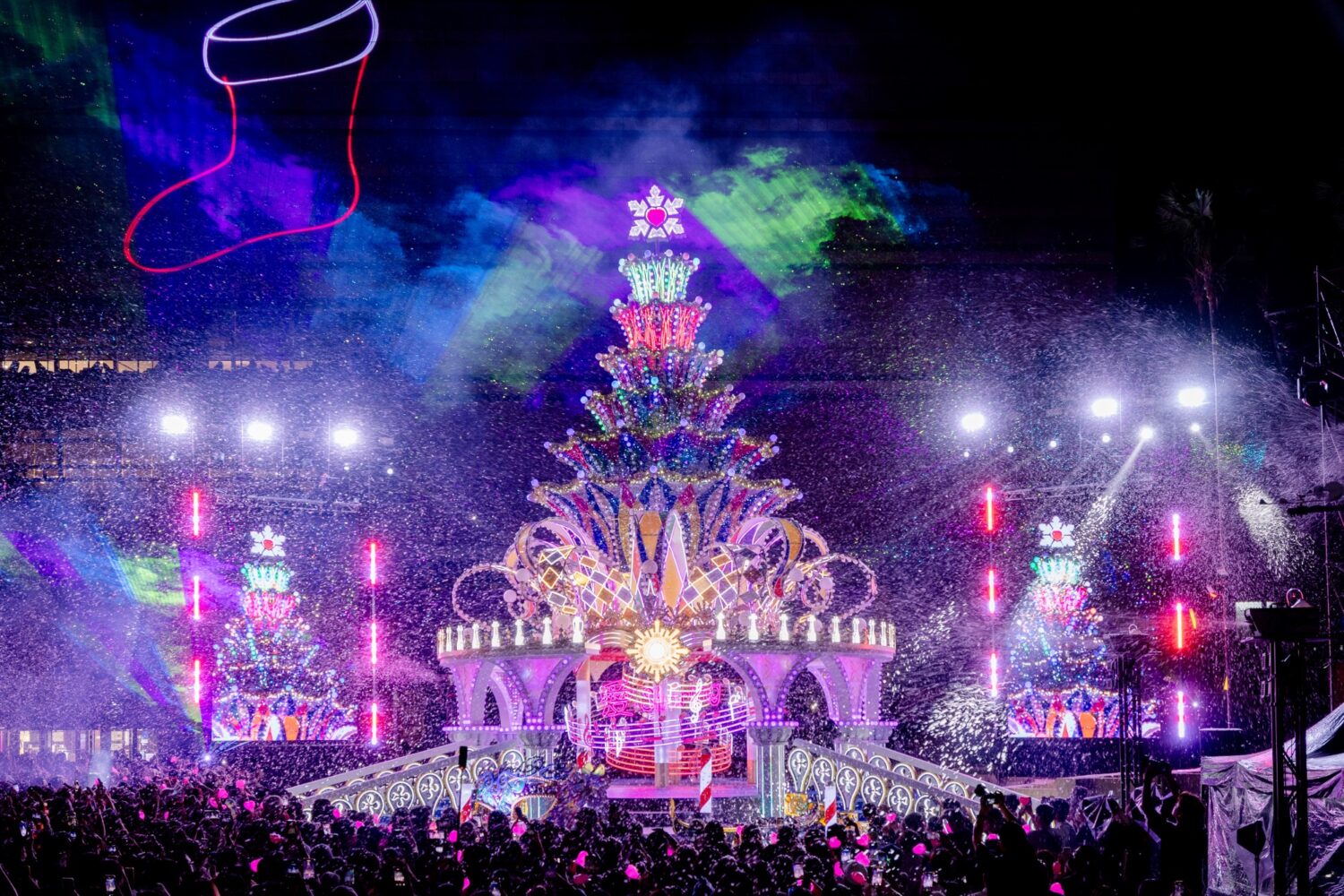 今年聖誕主樹Purple Wish的靈感,來自威尼斯著名的嘉年華面具節、聖馬可廣場的歌德式柱體與四季協奏曲的美妙樂章。動態設計結合威尼斯的浪漫與華麗,表現這座城市豐富的人文之美。即日起至2026/1/1,每晚18:00~21:00整點時刻展演主題燈光秀,指定週末加碼展演聖誕雪花秀。