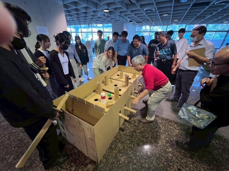活動邀請師長擔任評審團在設計學院大理石廣場舉行,由陳文亮主任率領張宗祐、陳合進、劉念德、林群超、徐建偉、葉茂林等師長,從作品操作性、互動性與趣味性進行多面向評分。現場師生互動熱烈,充分展現產設系以「做中學」為核心的教學特色。