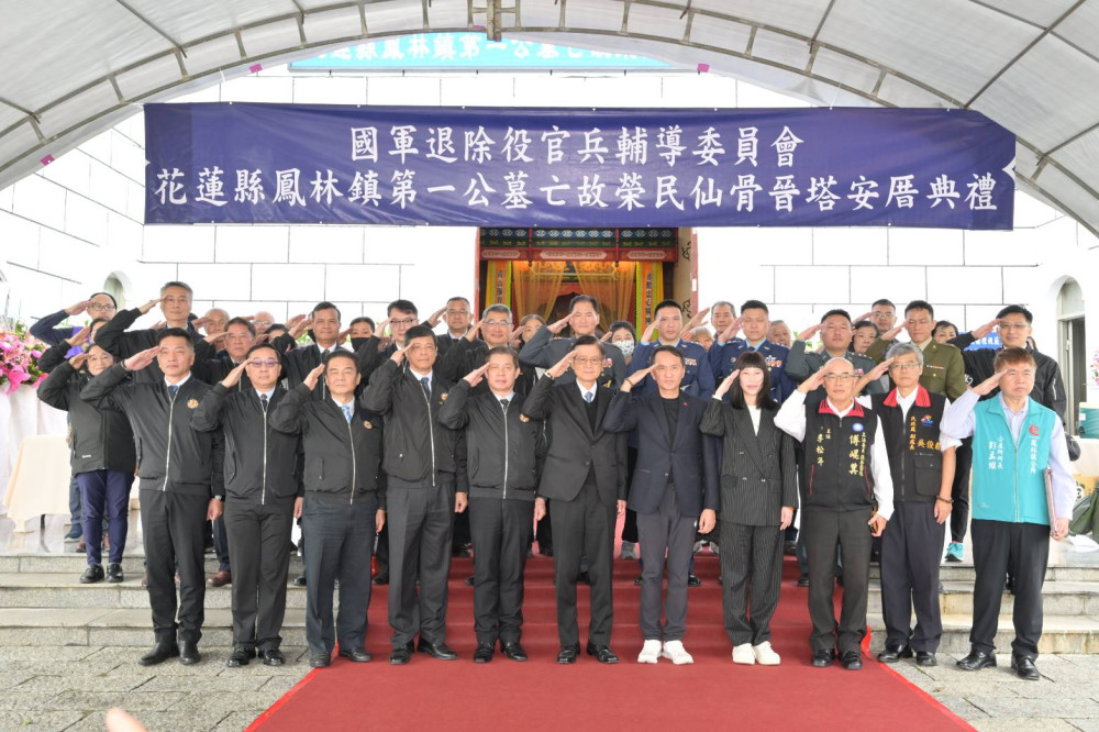 【勁報記者于郁金/花蓮報導】日前鳳林鎮第一公墓有48座亡故榮民墓座因天災不幸損毀,在花蓮縣榮民服務處與花蓮縣政府、鳳林鎮公所齊力合作下,順利完成48座亡故榮民墓座起掘及安厝花蓮縣軍人忠靈祠,特別在18日舉辦亡故榮民仙骨晉塔安厝典禮。