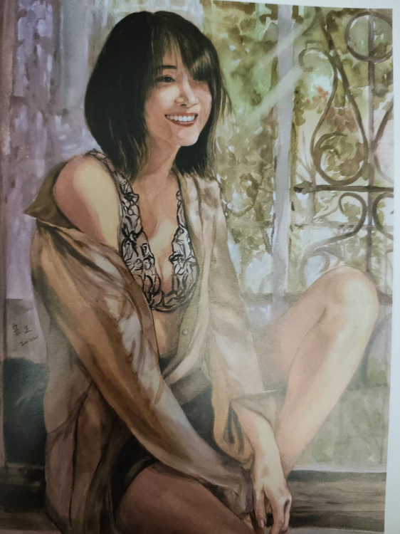 醫師畫家郭宗正展出作品中青春少女題材,總是洋溢活潑喜氣洋洋,歡樂氣息和幸福美滿氛圍,不僅傳達美的訊息外,讓觀者感染曠達轉念,有形不類物飄逸,張張美女圖,賞心悅目還叫人有多療癒,只能說郭醫師那枝奇妙的筆,蘸上淡淡膚色薫上濃淡顏料,反複擦染於紙上,於是美女圖悠然翩翩而出,其功力令人折服。