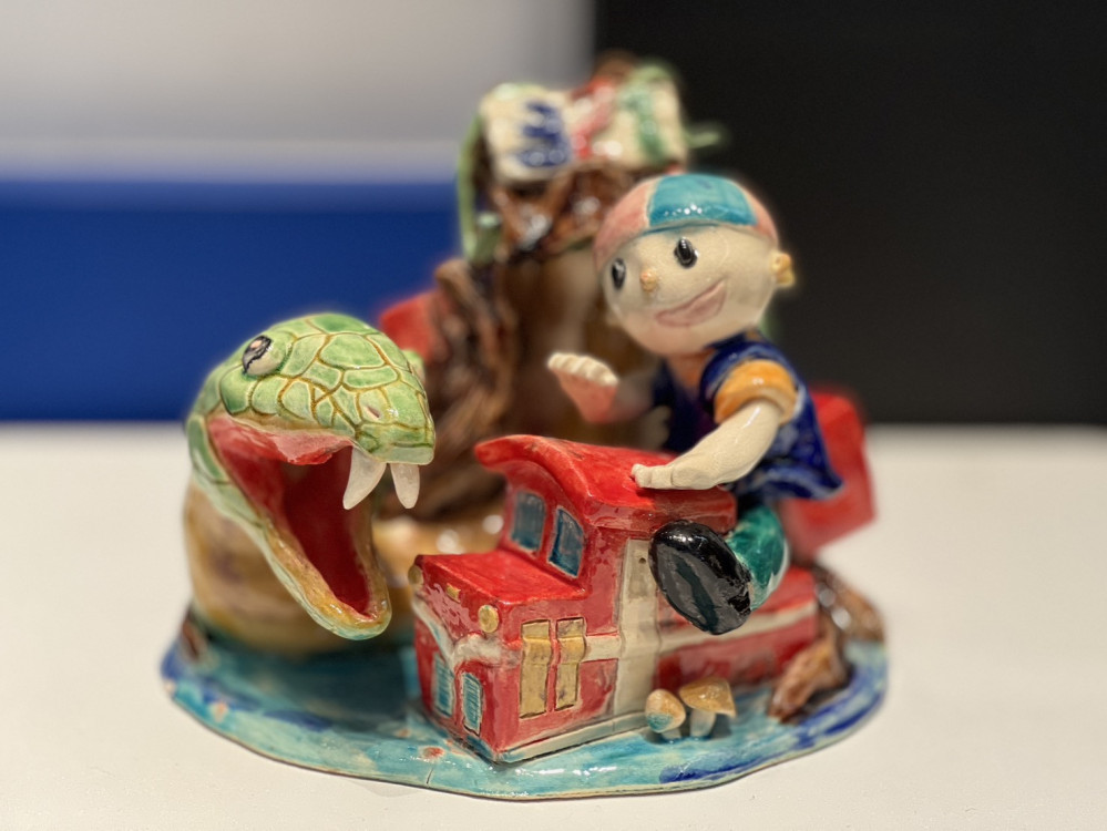 嘉義智選假日飯店攜手市立博物館 共展嘉義工藝之美 圖說:〈3…2…1…出發!〉|蕭亦茗(高中組)。以阿里山小火車盤旋樹根的意象,象徵嘉義的發展與青春活力。創作者以自身經驗投射對嘉義人情與生活的感謝,並以蛇年寓意城市好運延續。(業者提供)