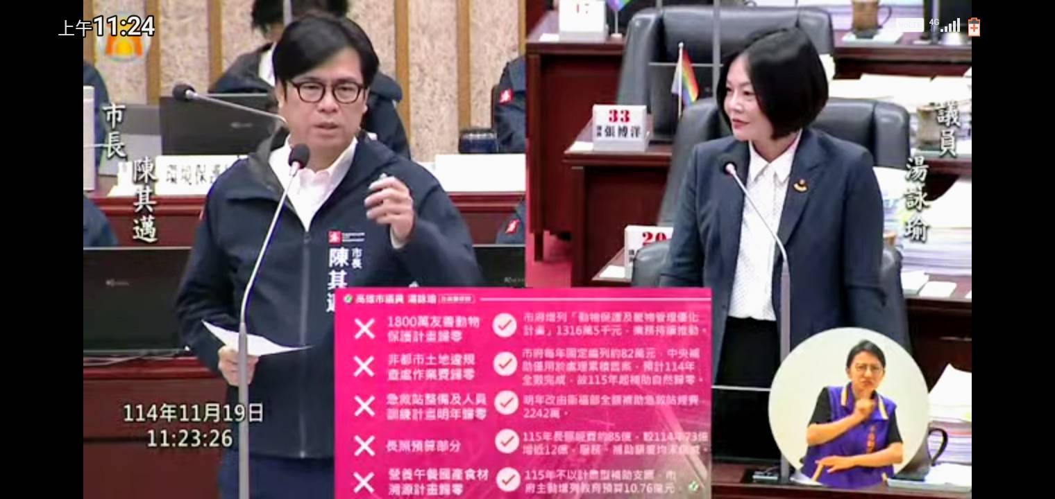 她說,部分議員質疑友善動物保護計畫、非都土地違規查處作業費、急救站整備及人員訓練計畫、長照預算、營養午餐國產食材溯源計畫等預算恐歸零,實際是市府努力編列預算,讓服務不中斷、市民權益不受影響。