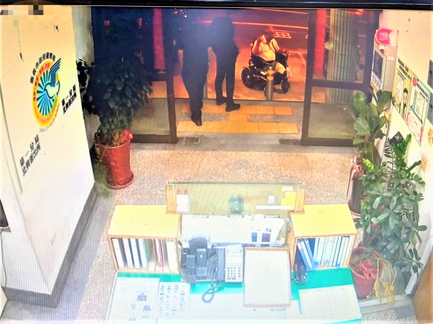 〔News586/記者李芸蓁嘉義市報導〕嘉義市政府警察局第一分局北興派出所警員陳正偉、李祐宸日前擔服值班及待命服勤勤務時,眼尖發現一名身障老翁神情慌張騎乘醫療電動輔助車停在派出所大門前,疑似故障無法行動,並聽到外面有呼喊聲音,急需警方協助,員警得知後立即上前關心協助。