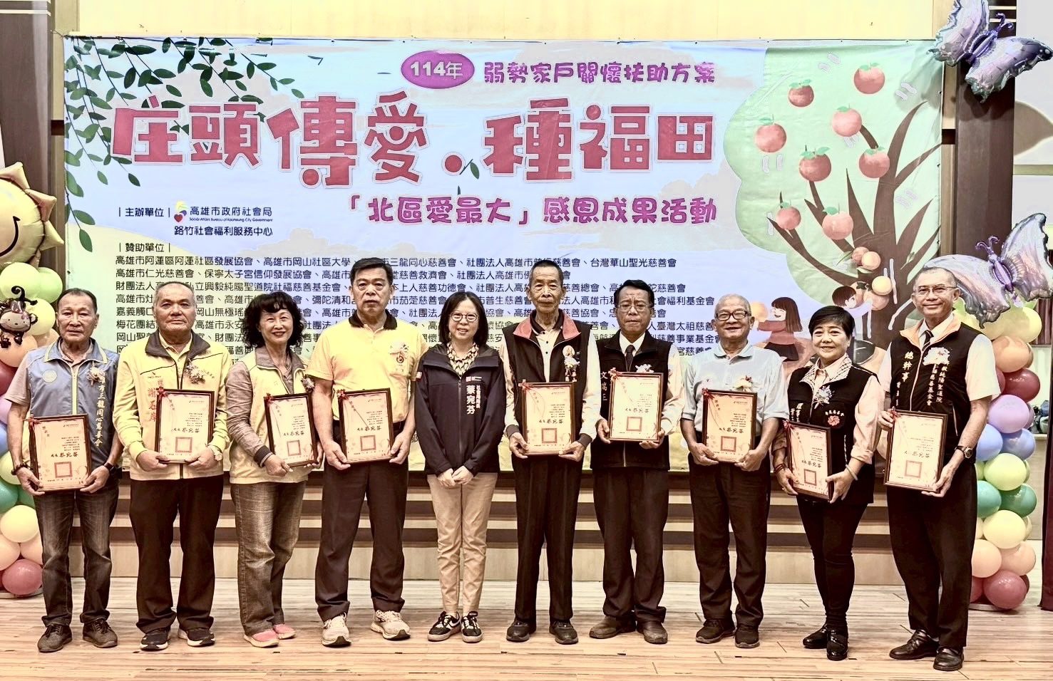 高雄市政府社會局岡山及路竹社福中心今(114年)結合88個慈善團體、企業與善心民眾募集近400萬元,共同協助弱勢家庭度過生活難關。活動110年開辦至今,5年來媒合超過2,000萬元善款,協助1,904個家庭度過生活難關今(22)日在阿蓮老人活動中心辦理「庄頭傳愛.種福田感恩活動,社會局蔡宛芬局長特別到場致贈感謝狀,感謝在地慈善團體業公司共同協力關懷照顧弱勢。活動中與會團體相互交流合作經驗,紛紛表示作伙攜手公益非常有意義。