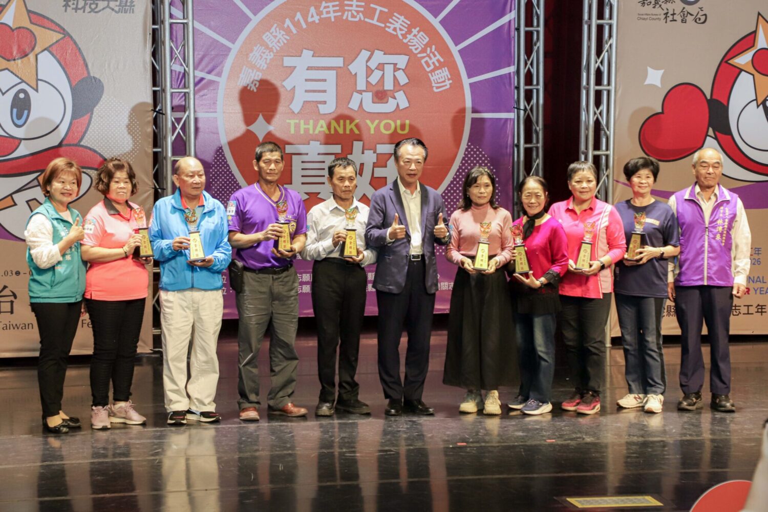嘉義縣政府今22日慶祝國際志工日,舉辦114年志工表揚活動,表揚來自各領域共631位績優志工,由縣長翁章梁親自頒獎,並肯定志工以「無我精神」投入服務,為社會帶來持續而深遠的正向力量,鼓勵更多民眾投入志願服務行列。