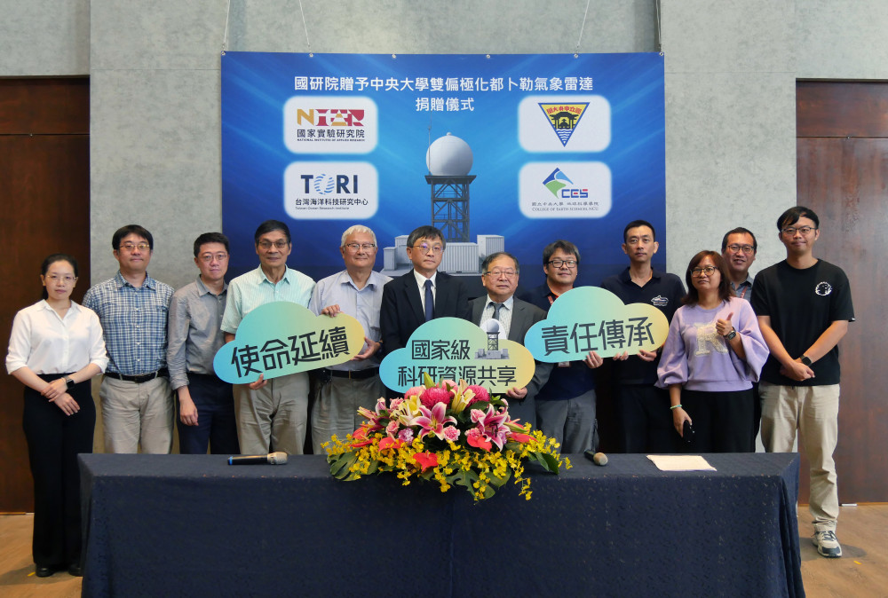國科會轄下國家實驗研究院台灣海洋科技研究中心(國研院海洋中心)多年來持續維運位於高雄市杉林區的雙偏極化都卜勒氣象雷達,該雷達長期為山區降雨觀測、颱風與豪雨研究提供重要資料,亦為國內災害氣象研究的重要觀測基礎。隨著原有階段性觀測任務告一段落,為使科研資源持續發揮價值並深化國內氣象觀測能量,國研院海洋中心捐贈此雷達系統予國立中央大學地球科學院,象徵國家級科研儀器功能的延伸。捐贈儀式於11月25日在海洋科技產業創新專區舉行,由海洋中心孟培傑主任與中央大學地球科學院李明旭院長共同主持。