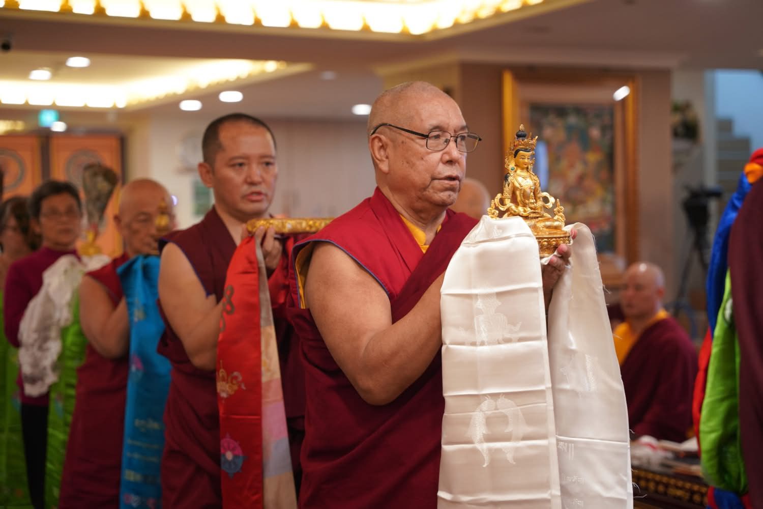 法會尾聲,眾人起立合掌,隨著回向偈念出最後一句:「願上師長久住世,常住世間,廣轉法輪。」