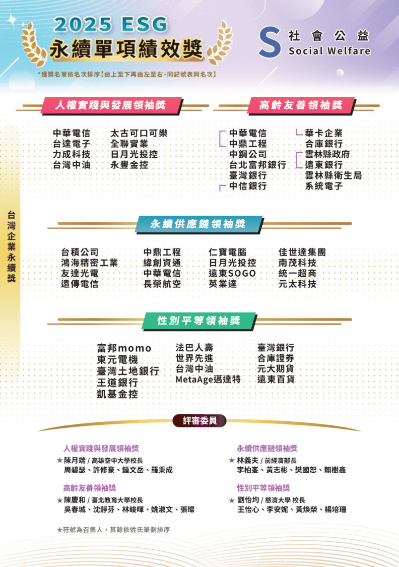 張麗善縣長榮獲「永續傑出人物獎」,是本屆唯一獲獎的行政首長。主辦單位指 出,此獎項評選重點在於永續治理的全面性、政策執行力與長期社會影響力,張縣長 在低碳轉型、循環農業、弱勢照顧、醫療提升及韌性城市推動等面向均具體展現施政 成果。