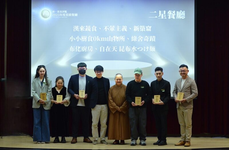 《綠・蔬食評鑑指南》頒獎典禮,由環境部指導,評審團由主席田定豐,領軍專業評審團,持續以「好吃.吃好」為核心精神,且導入碳足跡、永續理念及在地食材使用比例等評鑑項目,展現更科學與國際觀的評分機制,帶動蔬食產業升級與轉型。歷經半年匿名實地走訪,從數千家蔬食餐廳中,評鑑出65家優勝餐廳,其中三星級6家、二星級20家及一星級39家,脫穎而出榮獲2025年星級獎牌與表揚。詳細名單可透過綠色公益網址ttps://veg.ipuregreen.org查閱。
