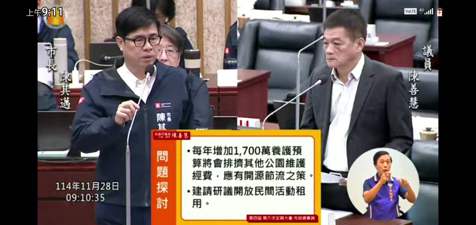 陳其邁市長表示認同,允諾除了增加經費、人力維護外,也將依議員建議規劃民間租用機制,分擔維護成本。