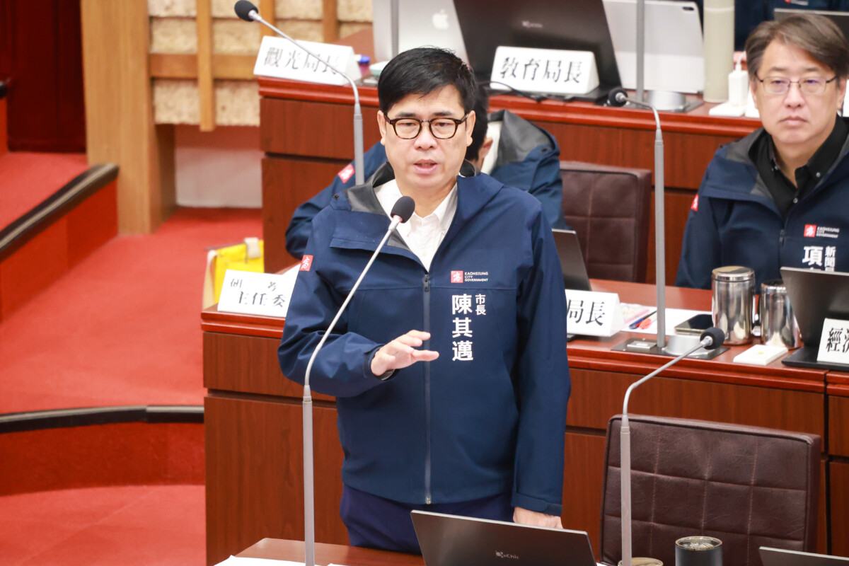 此外,對於議員提及青年返鄉與還地於民政策,陳其邁回應,市府將兼顧國土保安及農民權益,並依中央法制規範妥適研議。同時針對旗山溪、美濃溪治理與清疏議題,他說明流域方向與堤防條件,並承諾持續向中央爭取相關治水預算,全力確保居民安全。