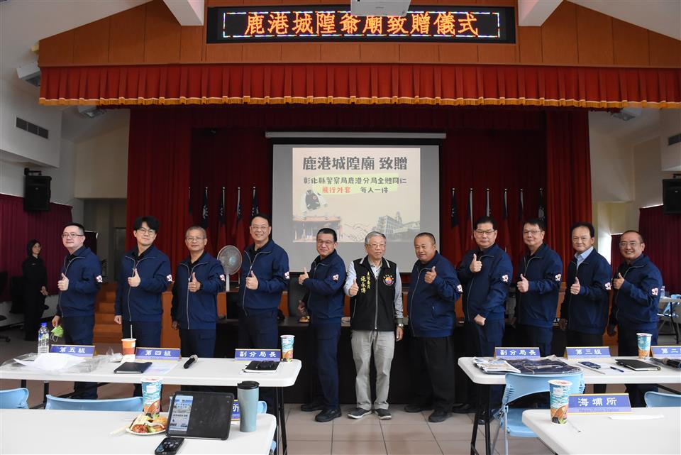 贈送儀式於114年11月26日在鹿港分局舉行,由鹿港城隍廟主委施永傳親自到場致贈,分局長代表全體同仁致上最誠摯的感謝。分局長表示:「飛行外套材質舒適、耐穿且具備設計感,彈性袖口和多個口袋也兼具實用性,適合同仁平日穿著,鹿港城隍廟的用心,讓同仁們深感溫暖與鼓舞。」