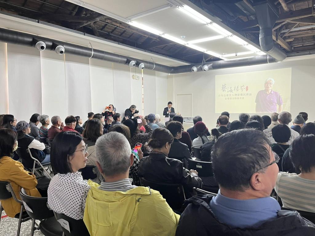 ▲竹美館舉行「藝海揚芬~百年公會堂人物影像民族誌」發表會,計畫主持人鄭飄致詞表示藝海揚芬計畫已進入第5年,拍攝記錄了43個資深藝術家。(圖/竹美館提供)