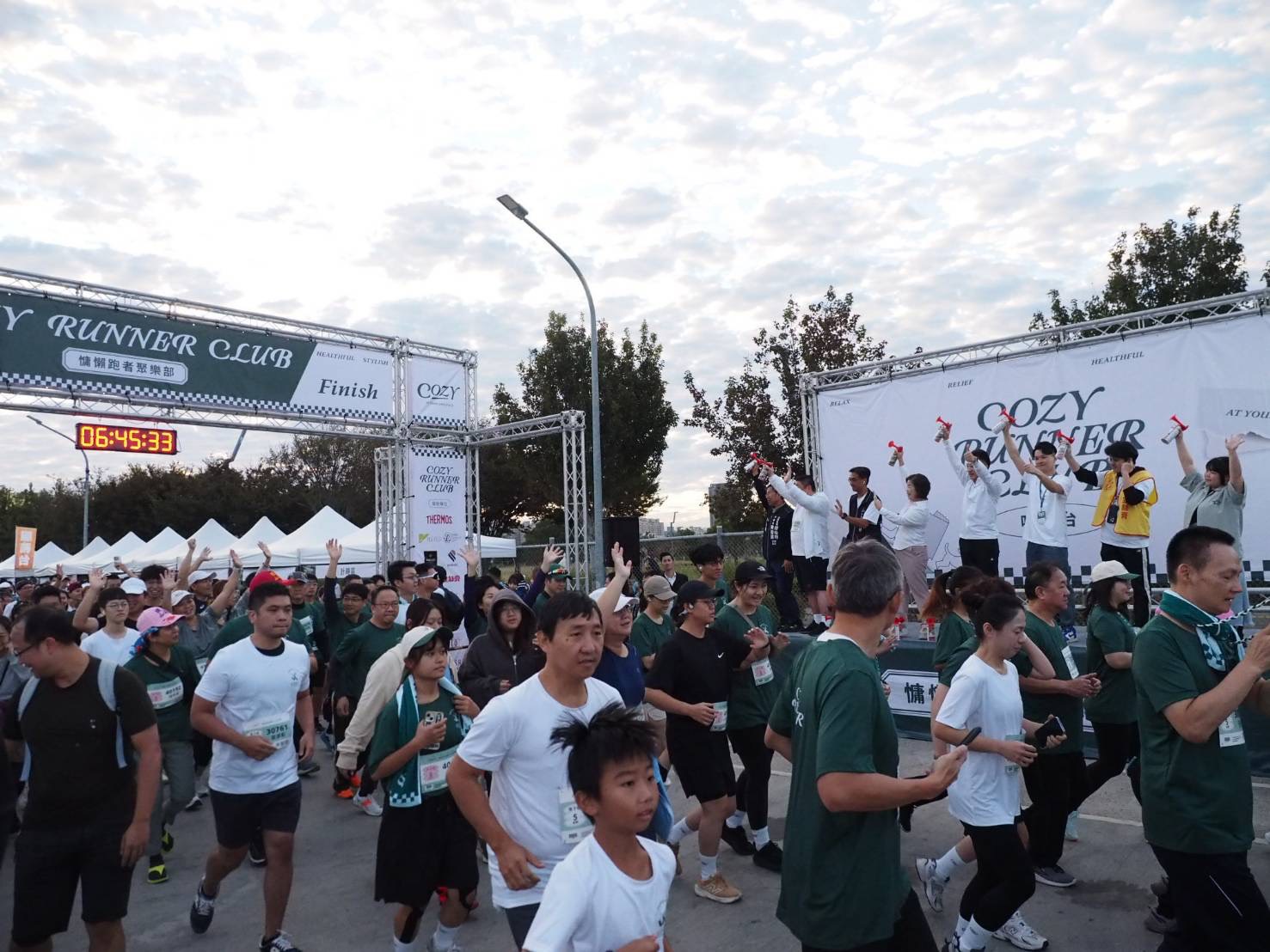 【News586/記者王偉報導】由國聚建設主辦的「慵懶跑者聚樂部 COZY RUNNER CLUB」路跑活動30日清晨在中央球場舉行,主辦單位估計共有超過5,500名跑者參與。活動進入第四屆,今年延續以輕鬆氛圍結合運動體驗的形式,並邀請 Fubon Angels 成員擔任起跑嘉賓。