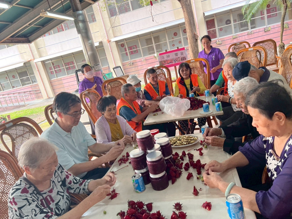 家主任與長輩們一起動手整理洛神花及果實,手工製作洛神果醬,迎接屬於他們豐收時光;榮家並舉辦「紅寶洛神下午茶活動」,現場備有精美自製洛神果醬吐司及飲料,員工及住民長輩們溫馨開懷話家常,氣氛熱鬧活潑,增添家區歡樂氛圍。