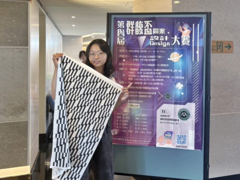 弘光科技大學文化設計與行銷系大二學生王郁棋從278件大專組作品中脫穎而出,勇奪第四屆群馥盃圖案設計大賽金獎。競賽要求入圍者現場說明設計美學與商品可行性,競爭激烈。王郁棋的作品「網路世代」詮釋虛實交錯的當代孤獨感,憑藉獨特美學與高度量產可行性,展現壓倒性專業創新設計實力,獲得評審青睞。