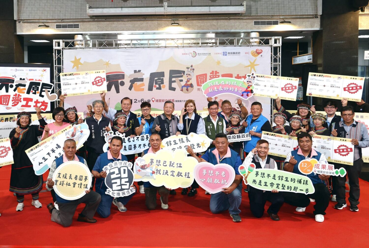 南投縣政府2日在縣府一樓大廳,隆重舉行南投「不老・原民」圓夢工坊─南投縣原住民族文化健康站長者圓夢計畫成果展記者會。這項計畫以「促進長者就業及提升福利服務」為核心,不僅成功傳承了珍貴的原住民族傳統技藝,更協助23個文化健康站的長者們,透過創作圓夢商品,讓老人家搭飛機、去海邊、登101等等小而美的心願成真,實現自我價值與夢想,落實全齡宜居南投縣的「樂齡共好」發展目標。