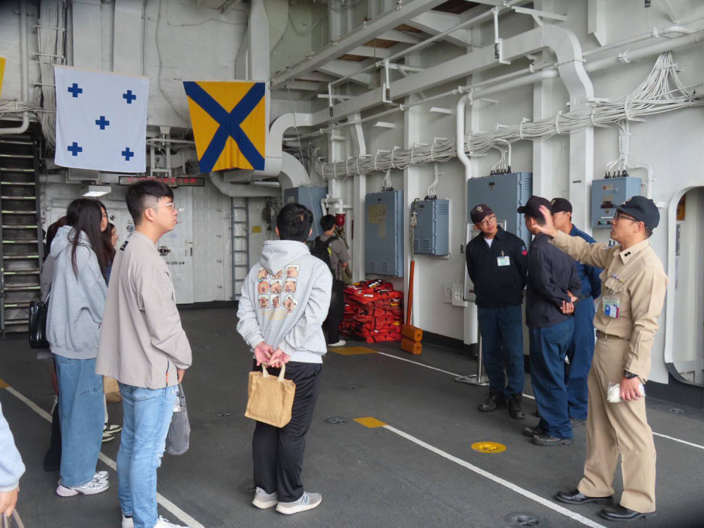 隨後,師生前往高雄海軍旗津基地進行參訪,透過近距離觀察艦艇裝備、勤務空間與任務編組,實際感受海軍在國防策略與海疆安全中所扮演的關鍵角色,參訪活動不僅增進學生對軍事工作的理解,也提升年輕學子對志願役與ROTC職涯的興趣。