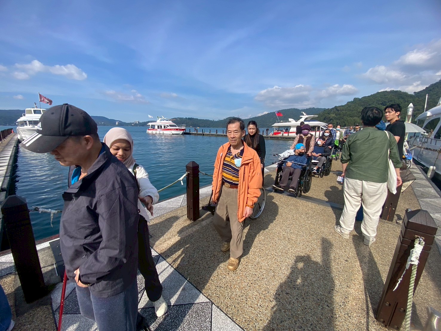 下午則前往日月潭水社碼頭,特別為住民包下電動遊湖船,以更穩定、安靜且安全的方式遊湖。從水社碼頭至玄光碼頭的航程中,由專業導覽人員全程介紹日月潭各大景點,包含涵碧半島、拉魯島、山光水色等地標,讓住民在欣賞湖光山色的同時,也能更深入了解日月潭的自然與人文故事。