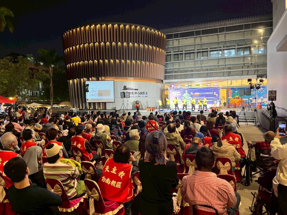 【大成報記者杜忠聰/臺南報導】「2025 台南聖誕燈節 – 新營文化中心暨綠川廊道燈區」正式點燈,葉澤山副市長主持儀式,偕同天主教台南教區總鐸長梁承恩神父、觀旅局長林國華、市議員蔡育輝伉儷等貴賓及民眾共同見證。系列活動自下午 2 點展開,聖誕甜蜜市集與愛心義賣吸引大小朋友選購禮品,17 點 30 分由天主教台南教區帶來精彩歌舞表演,18 點 30 分倒數環節後,新營文化中心廣場聖誕樹與綠川水岸廊道同步亮起,溫馨氛圍彌漫全場。