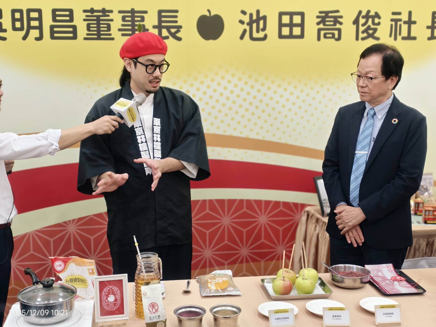 吳董事長在致詞時表示,感謝池田社長對台糖的肯定與喜愛,證明雙方對「糖的品質」要求與堅持,使得台糖砂糖與其製作的蘋果糖一拍即合,獨特的蔗蜜香氣加上日本蘋果的清甜,完美勾出兩者最有韻味的靈魂,不單味覺前所未有的「烏馬義」(音似日文「好吃」的うまい),視覺也非常的「綺麗」(日文「漂亮」的漢字)。