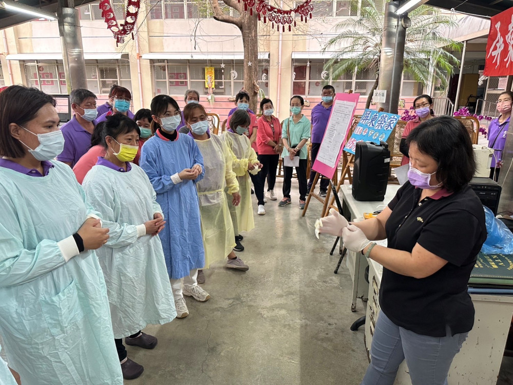 榮家說明,本次演練模擬住民發生疥瘡群聚感染,各堂護理師及照服員依通報程序、現場隔離動線、照護人員防護裝備穿脫、感染住民依使用藥物給予不同照護模式等課目,逐一演練;演練過程強調臨場反應與團隊合作,過程緊湊完整,確保工作團隊在面對實際狀況時能迅速且準確處置。