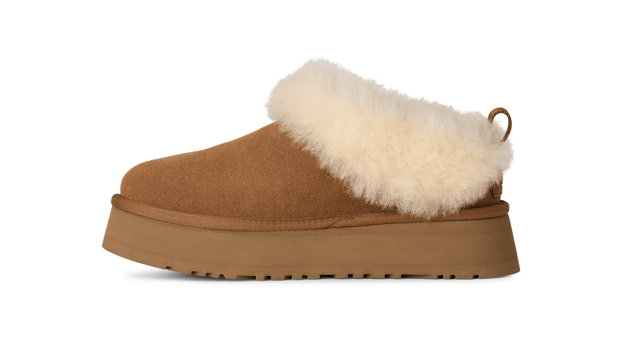 作為品牌記憶點最強的款式之一,本季的 Chalet 版本以更俐落線條與戶外感重新演繹。麂皮鞋面加上蓬鬆毛感裝飾,打造兼具華麗與個性的曠野風格。內裡使用柔軟 UGGplush 與再生羊毛,為冬季帶來雙倍舒適與環保理念。