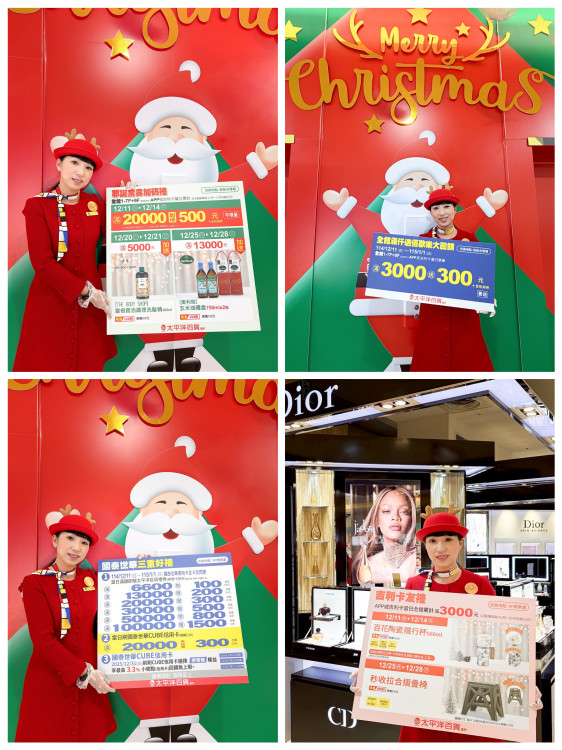【 大成報記者蕭宇廷/臺中報導 】搶攻耶誕及跨年商機,豐原太平洋百貨祭出年末最後一波耶誕跨年3000送300、滿額再加送驚喜加碼禮;另外更攜手國泰世華信用卡推出太百獨家3重回饋,當日刷卡滿6,600起即贈百貨禮券,最高加贈1,500;刷CUBE卡滿2萬再加贈3百、選擇樂饗購Level再享3%回饋,層層堆疊創造出24%的超優購物回饋!