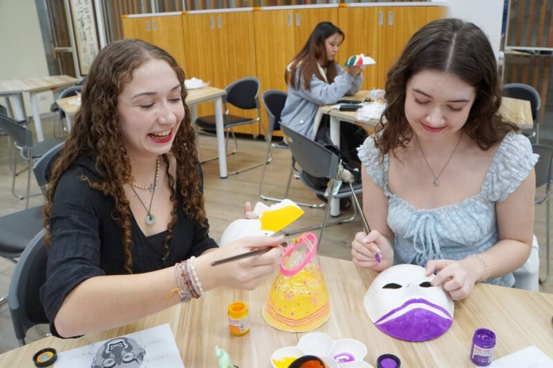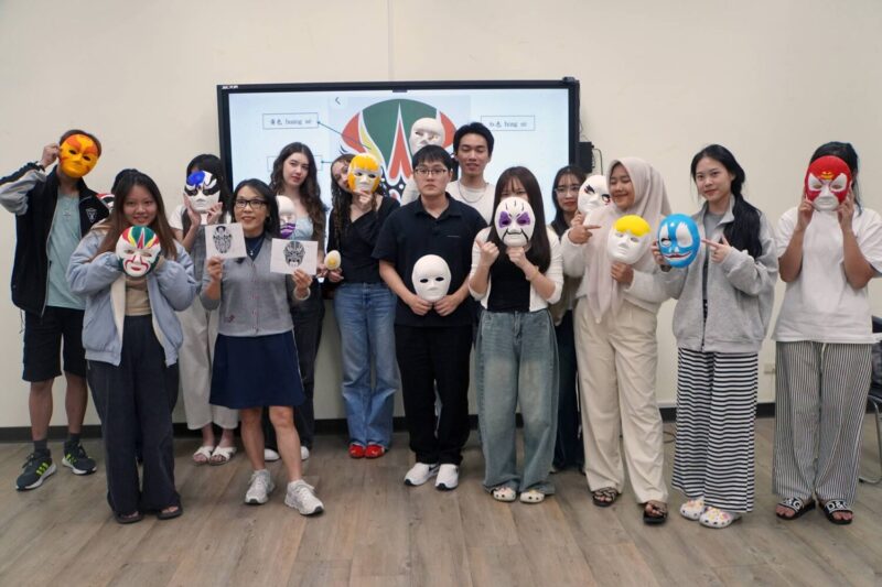 設計學系教授鄧婉玲的彩繪臉譜課程,帶領學生認識臉譜色彩與角色象徵,並親手創作臉譜作品,學生們為臉譜畫上自己喜歡的顏色和圖案,展現各自的創意與風格。