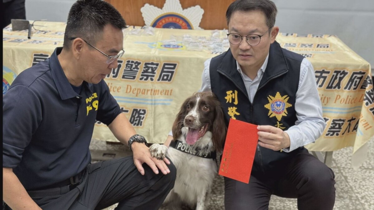 高雄刑大破獲陳姓男子為首的網路販毒集團,該集團以通訊軟體接單後、再以提供埋包座標的方式交付毒品,但全都栽在緝毒犬「可樂」鼻子下。 (圖:記者李佳龍/翻攝)
