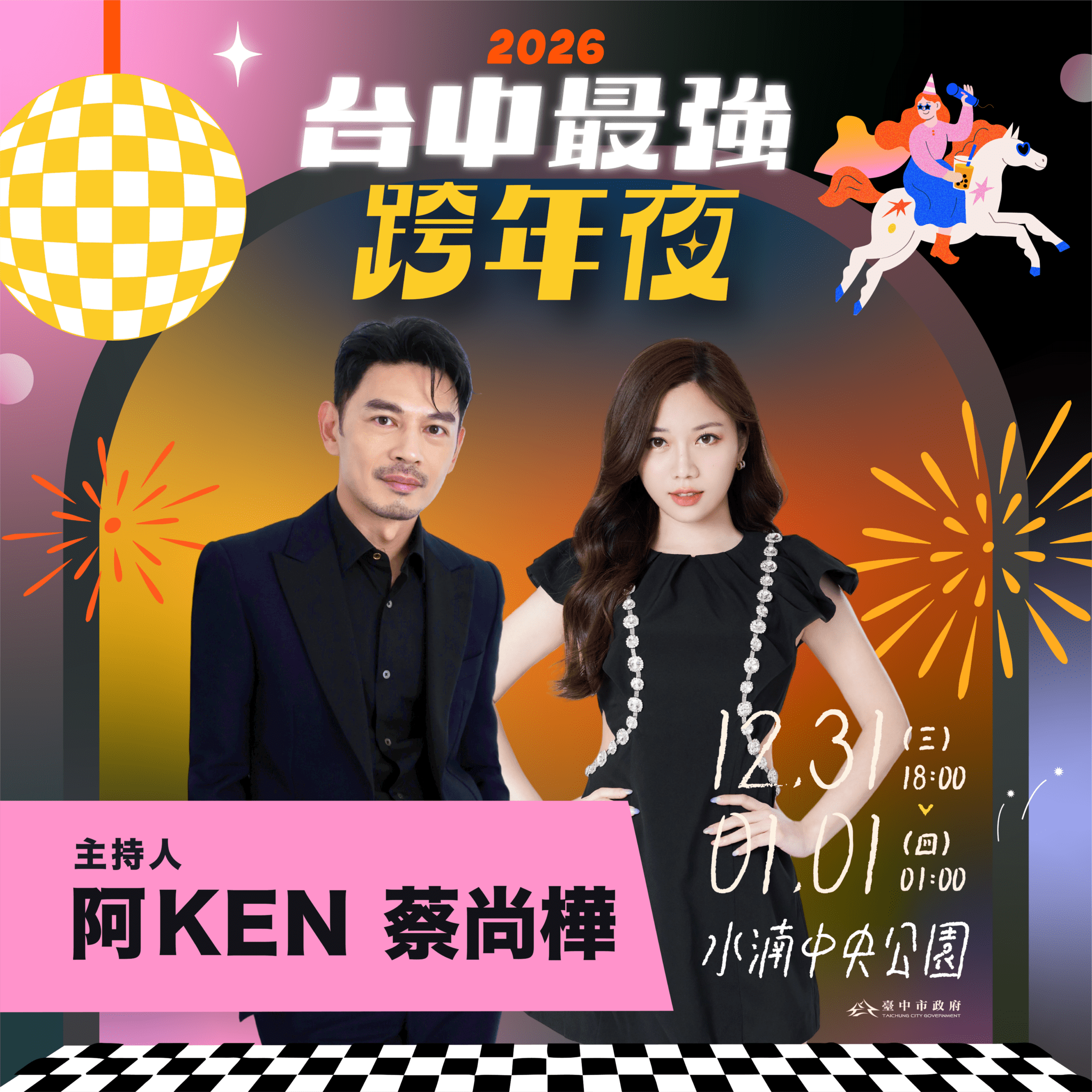 連續5年拿下全台跨年網路流量冠軍的「台中最強跨年夜」,今年再次在水湳中央公園熱鬧登場!繼金曲歌王蕭敬騰、文青天團告五人、經典天團動力火車後,台中市政府新聞局長欒治誼今(12)日揭曉第三波演出卡司,「三金滿貫歌王」盧廣仲與青春能量爆棚的怕胖團加入陣容,將陪伴市民一路嗨到凌晨1點。主持陣容則由阿KEN十度回歸,再度用「Ken式幽默」帶動全場氣氛。