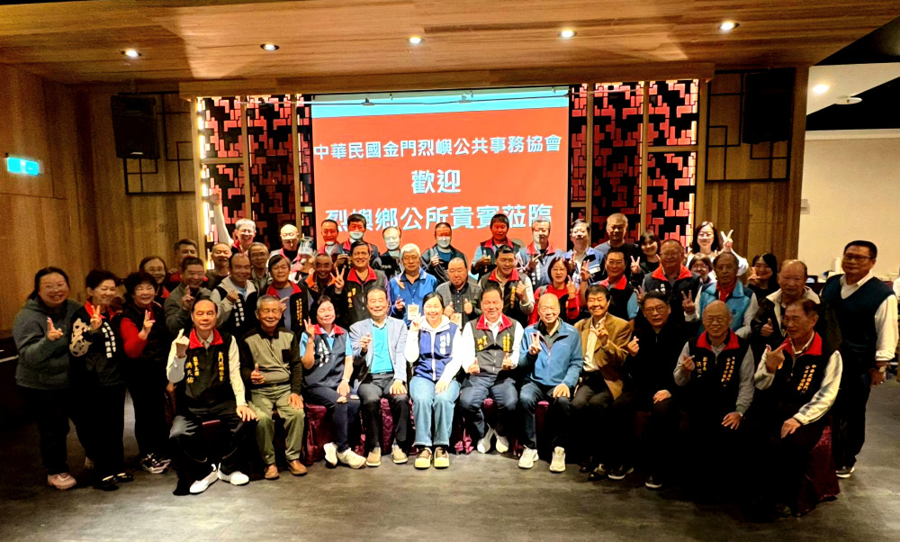 【大成報記者于郁金/金門報導】金門縣烈嶼鄉洪若珊鄉長於近日下午跨海來台,率領該鄉各課室主管、鄉政顧問、調解委員會委員一行約40人參訪中華民國金門烈嶼公共事務協會,受到該會洪朱生會長及理監事、顧問、幹部熱烈歡迎,並假狀元樓晶豪宴會館設宴接待,進行交流餐敘聯誼;大夥相聚暢談浯島家鄉事,溫馨交流互動,充滿濃濃鄉情氛圍。