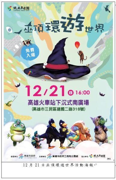 最童趣藝文冒險即將啟程!紙風車劇團「巫頂環遊世界」12/21高雄火車站開演