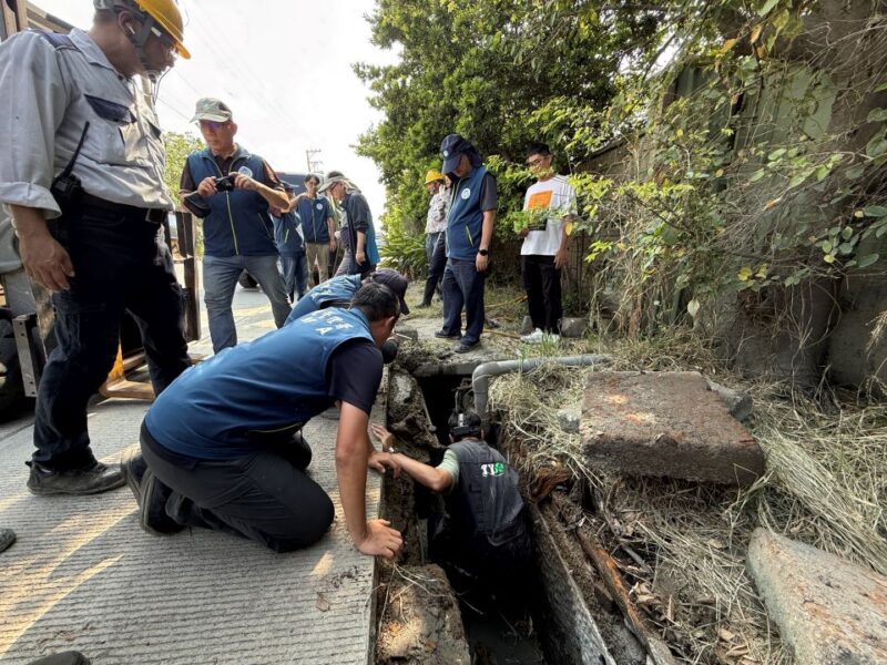 稽查過程中,桃園環保局持續投入大量人力物力,與檢、警、調、環等跨域專業單位緊密合作。稽查人員為了揪出隱藏在地下、難以察覺的偷排暗管,不辭辛勞,冒著惡臭與可能存在的危險,鑽進狹窄的下水道和涵管內部,詳細爬梳檢查每一段管線,最終鎖定了業者私設的繞流暗管位置。