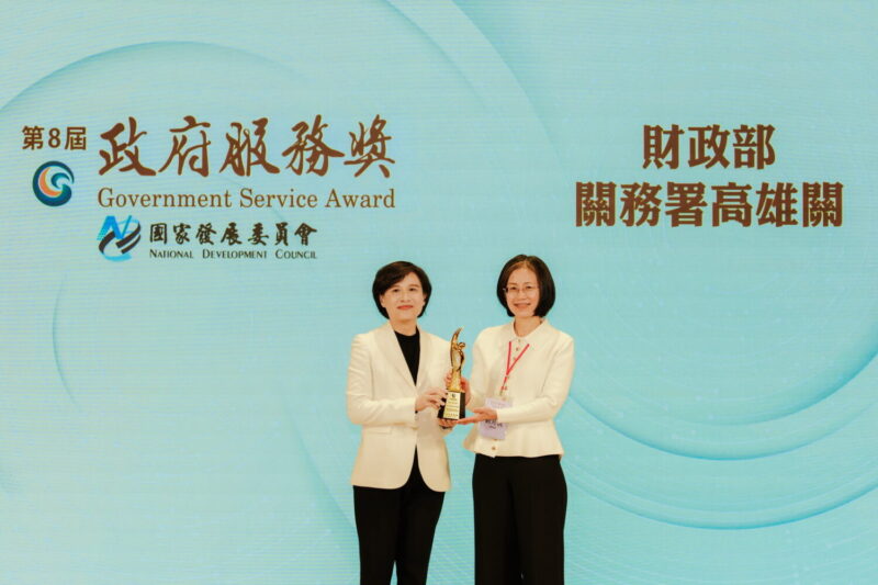 財政部關務署高雄關以「數位化與自動化結合,打造智慧監管綠色碼頭」專案,成功在第8屆「政府服務獎」競賽中脫穎而出,榮獲「數位創新加值」項別肯定。高雄關關務長劉芳祝於114年12月15日,帶領團隊前往政治大學公共行政及企業管理教育中心(公企中心)接受頒獎,為機關在推動數位轉型、提升海運服務效率上,獲得國家級的肯定。