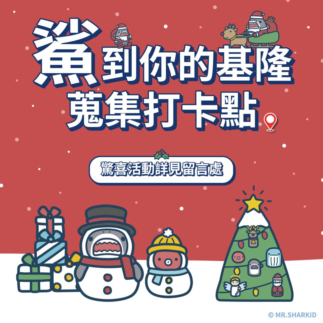 同時推出「鯊」到基隆聖誕驚喜打卡活動,開放募集遊客們的「基隆魔幻時刻」。凡拍下海洋廣場光環境照片分享至個人FB,打卡於「海洋廣場」,同步將貼文設成「對所有人公開」,並於留言區留下「我在聖誕樹下許願!」,即有機會獲得豐富的聖誕大禮,獎品清單豪華吸睛:包括頭獎 Apple Watch SE 3 (1名)、PHILIPS 飛利浦氣炸鍋 (1名),以及家樂福禮券 500 元 (5名)等。所有得獎者更將額外獲贈「基隆文化觀光局與鯊魚先生合作專屬限定紀念商品」乙份。另外「鯊到基隆」獨家line貼圖同時上架,歡迎喜愛MR.SHARK的行家們下載使用,讓超萌的「鯊騎馬」陪你歡樂180天。