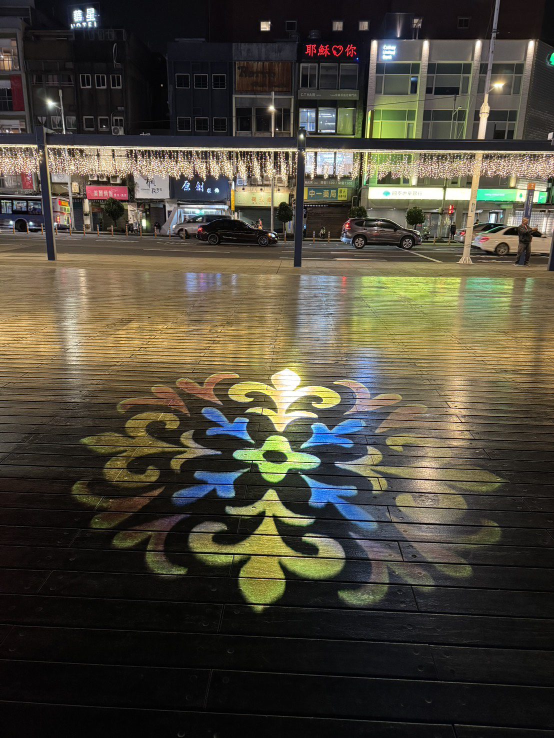 繼11月21日「光耀基隆。點亮港灣」點燈儀式~海洋廣場矗立16米聖誕樹後,基隆市文化觀光局正式啟動第二波亮點!在飛鳶廣場增設互動拍照框;金雞橋到美猴橋河畔的行道樹,沿著行道樹搭配基隆元素光影投射,呼應「多元族群」與「浪漫基隆雨」主題,將河岸變身為光影畫廊。海洋廣場地面投射西班牙花磚紋與城市品牌元素,巧妙地將基隆的航運歷史、海洋文化與城市記憶,融合成一個多視角、充滿節日氣息的光影敘事場景。