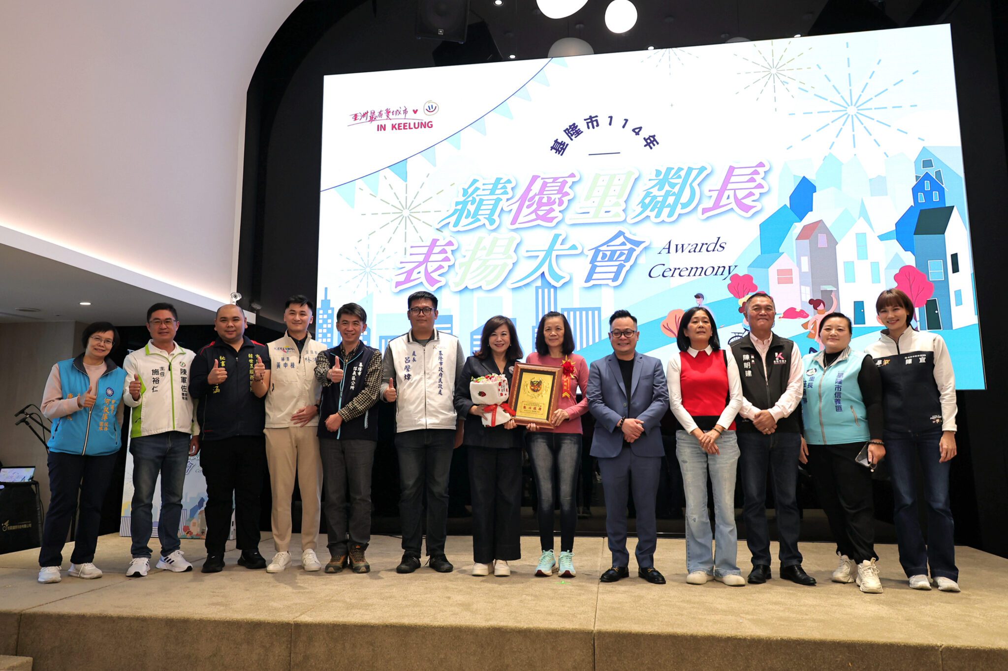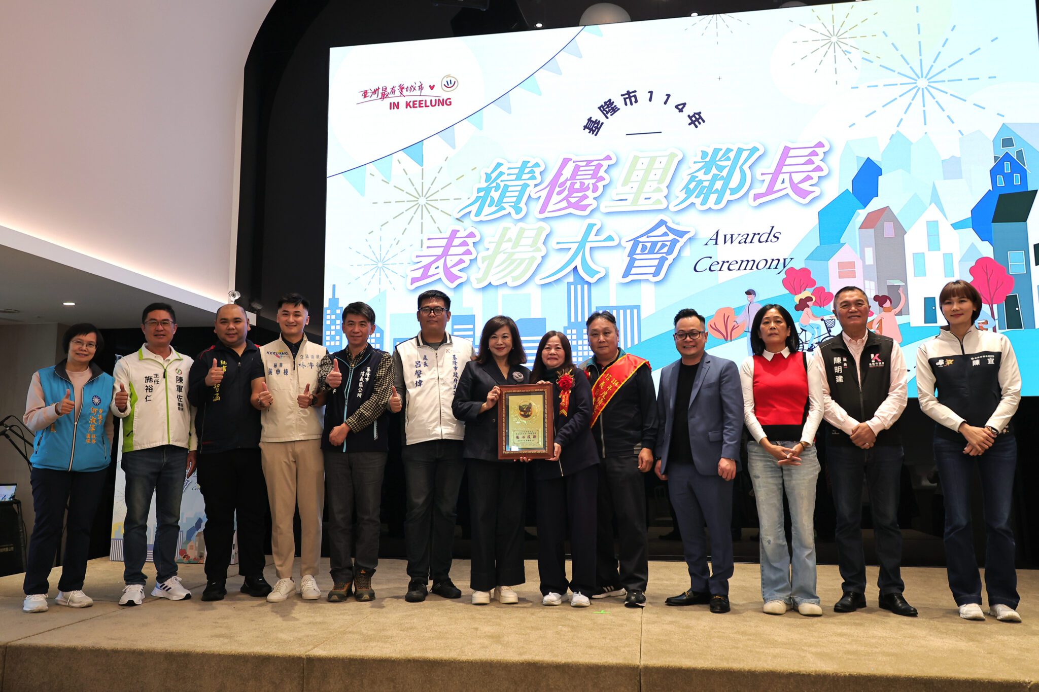 基隆市政府今(17)日在長榮桂冠酒店舉行信義區、暖暖區及七堵區績優里鄰長表揚活動,副市長邱佩琳代表市長謝國樑,逐一頒獎表揚138位長期深耕基層、無私付出的里鄰長,感謝大家在第一線為民服務,成為市府與市民之間最重要、也最溫暖的橋樑。