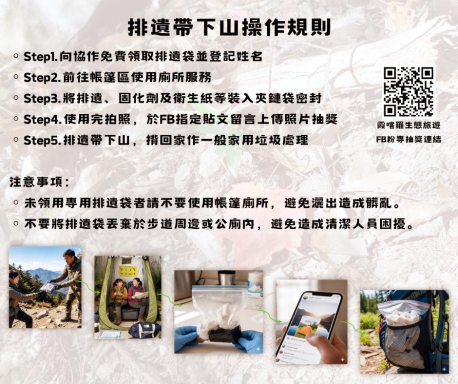 公私協力推動無痕山林 霞喀羅國家步道「排遺帶下山」五步二不要!