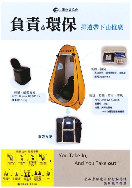 ★未領用專用排遺袋者請不要使用帳篷廁所,避免灑出造成髒亂。
