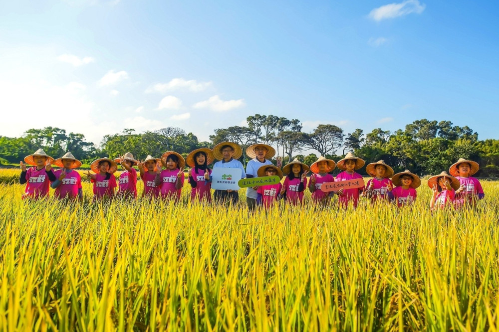 ▲黑松教育基金會董事長張斌堂(左8)參與社子國小插秧活動。(圖/黑松教育基金會提供)