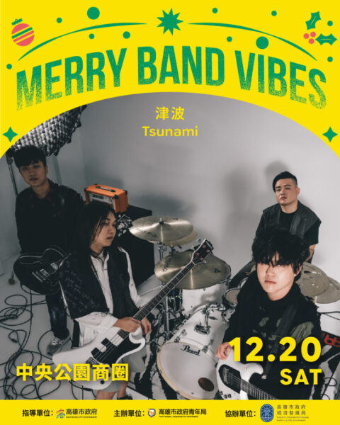 週六下午5時至晚間8時30分登場的「Merry Band Vibes」音樂展演,將由青年局「高速青春」培育樂團擔綱演出,包括「聽聽就好 Just Listen」、「津波 Tsunami」領軍開唱,並串聯「雄校聯」的校園音樂能量,由福誠高中熱音社、道明中學民謠吉他社及小港高中熱音社接力登台,以青春樂音點亮中央公園玉竹商圈,展現校園社團與城市街頭接軌的音樂動能。