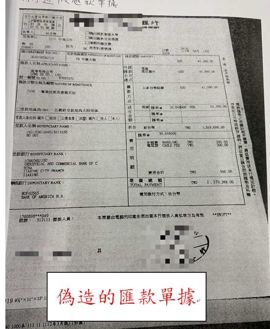 行員進一步檢視江女與對方的通訊紀錄,發現對方透過LINE聯繫,並提供一張銀行外匯匯款單作為佐證文件,然經查驗後發現該匯款單內容疑似遭偽造,遂立即通報轄區警方到場協助。公益派出所巡佐林宜立、警員許志在接獲通報後迅速到場了解狀況。