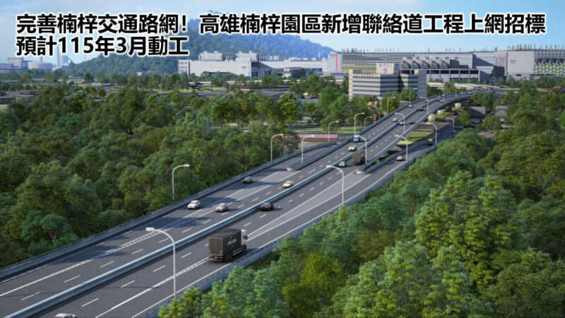 完善楠梓交通路網!高雄楠梓因應旗艦廠商進駐楠梓園區,為降低大量車流進出帶來的交通衝擊,工務局新工處積極辦理楠梓園區新增聯絡道工程設計,並刻正辦理上網招標作業。工程採購預計於明(115)年初完成,將於明年3月動工,目標於118年1月完工啟用。