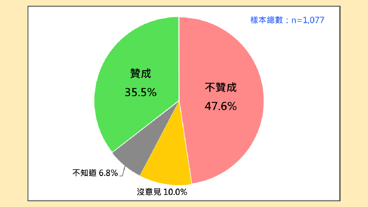 跨族群分析:除極年輕族群外,社會各界多持反對票 在年齡層分析方面,除20-24歲年輕人有46%較高支持度外,其餘各年齡層皆呈多數不贊成。教育背景方面,從大學及以上到小學以下,每一類別皆呈現明顯多數反對。職業背景則顯示,包含白領、勞工、退休人員皆反對此修法;值得注意的是,身為利益關係人的「軍公教人員」內部對此亦無共識,不贊成者(44%)甚至略高於贊成者(41%)。