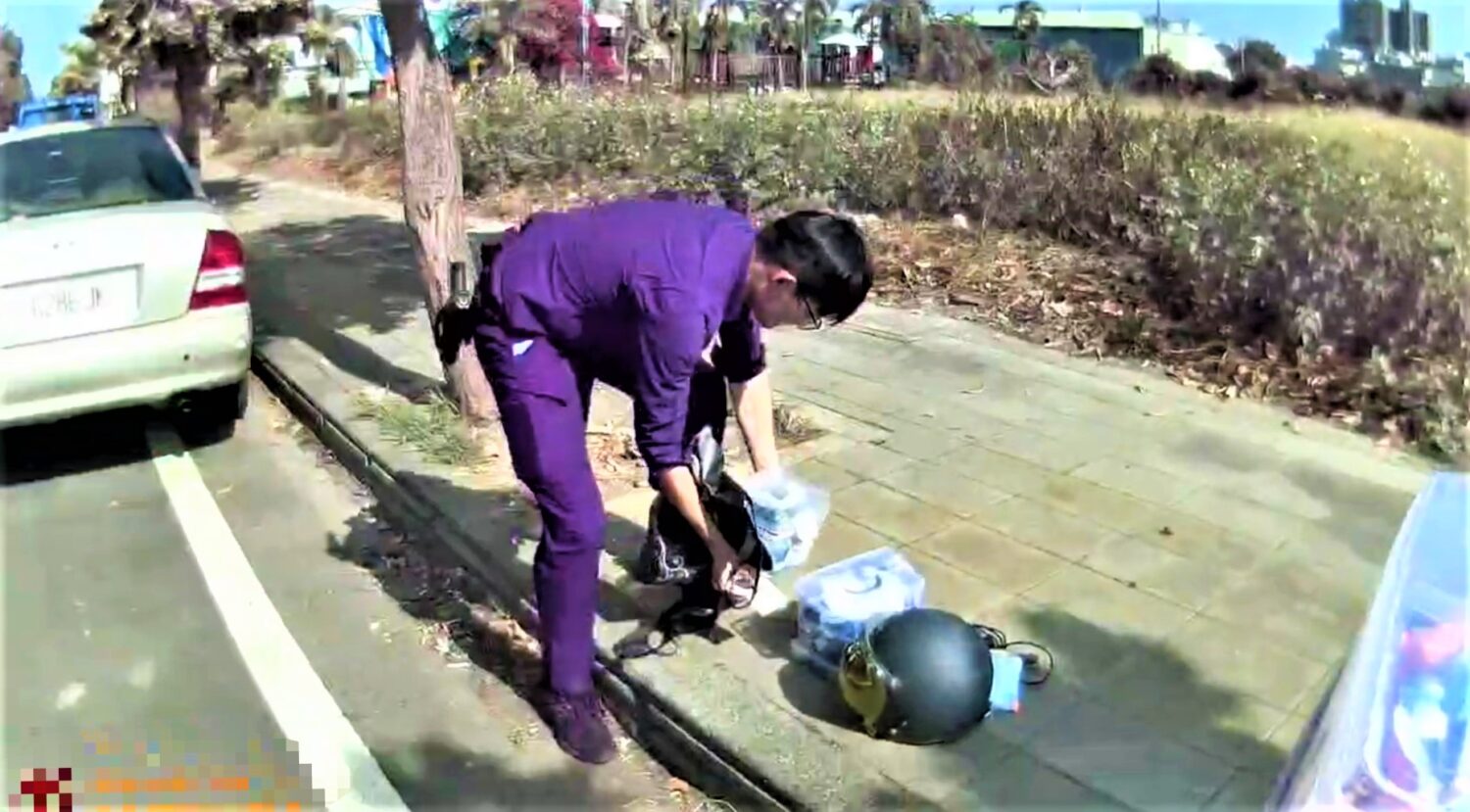 黃、陳2員立即在現場擺放交通錐進行交通管制,提醒後方來車減速並引導安全通行,同時協助林女逐一撿拾將地面散落的教材文具模型等物品拾回整理,以避免用路人因通過雜物而摔倒受傷,經現場迅速恢復安全及通行秩序,林女對於員警貼心的為民服務深受感動,表示「真的非常謝謝警察先生,不只是幫我處理事故,連這些教材都幫忙撿回來,真的很貼心。」